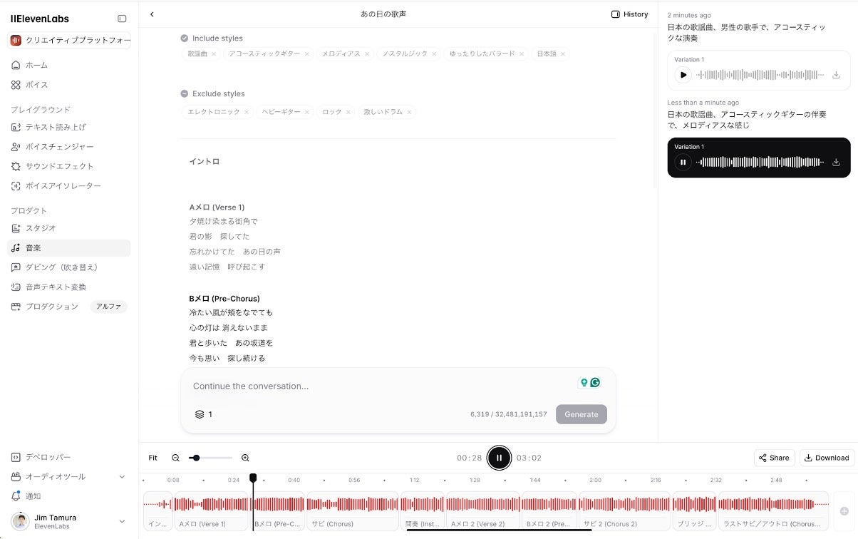 AI解説者が絶賛 「Suno v5」の強烈進化でJ-POPから演歌まで“即戦力楽曲”が自動生成! – ライブドアニュース 2025年9月25日2025年9月25日ai YouTube動画『【Suno v5登場】ハズレなしの日本語ボーカル曲を作れる! ~最速レビュー&ChatGPTと組み合わせてヒット曲を作る~』にて、AI解説者・ミライが最新AI楽曲生成ツール「Su