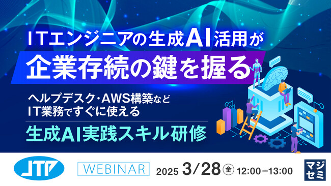 『ITエンジニアの生成AI活用が、企業存続の鍵を握る』というテーマのウェビナーを開催 (2025年3月15日) – Excite Bit コネタ 2025年3月15日2025年7月17日ai マジセミ株式会社は「ITエンジニアの生成AI活用が、企業存続の鍵を握る」というテーマのウェビナーを開催します。[画像1:https://prcdn.freetls.fastly.net/release...